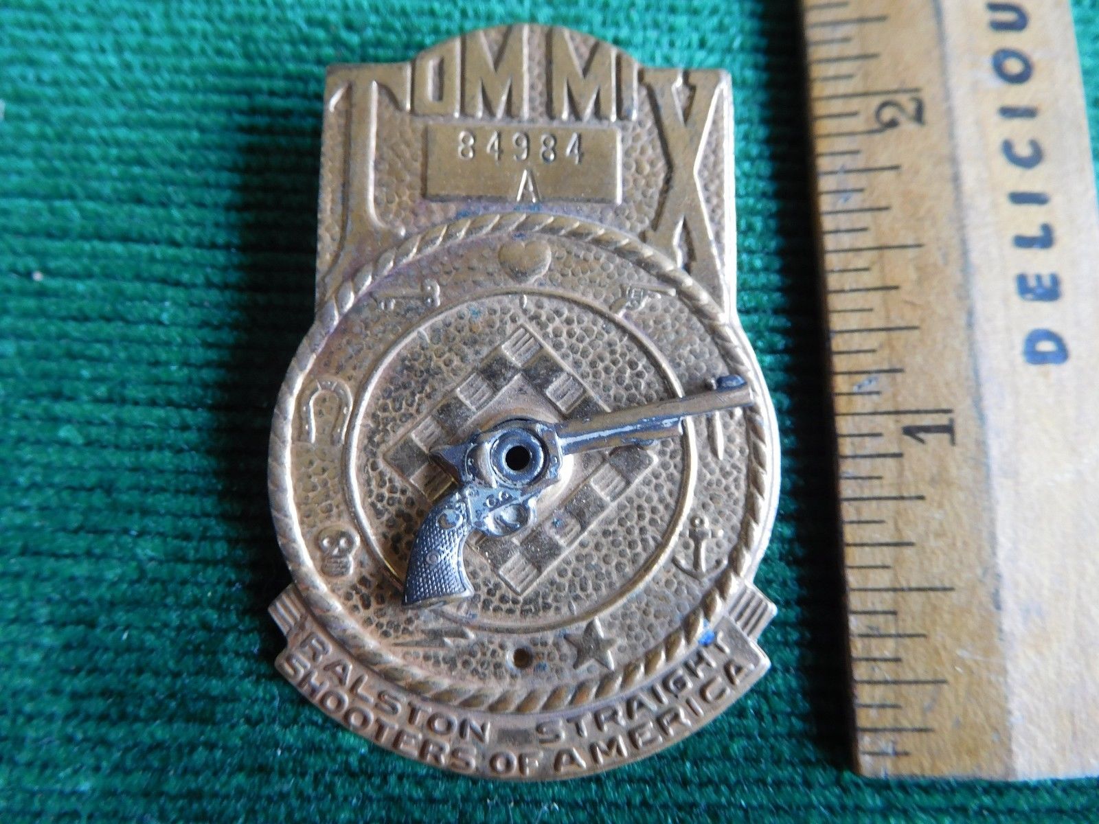 1940''s Tom Mix Premium Ralston Straight Shooters of America Pin Decoder Badge