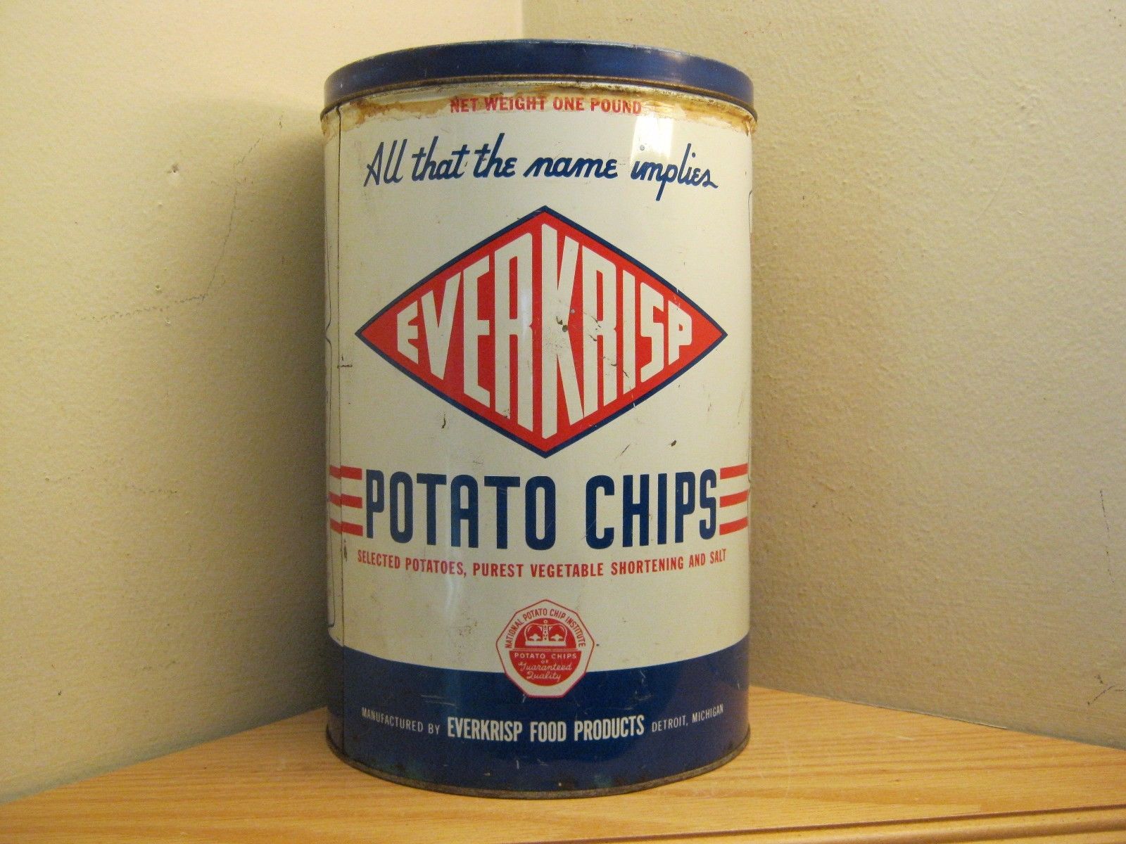 RARE VINTAGE EVERKRISP POTATO CHIP TIN CAN 1LB DETROIT, MI. L@@K *FREE SHIPPING*