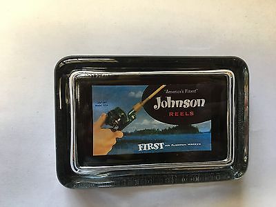 Johnson Fishing Reel Rod Sport Advertising Sign Label Logo Glass PAPERWEIGHT