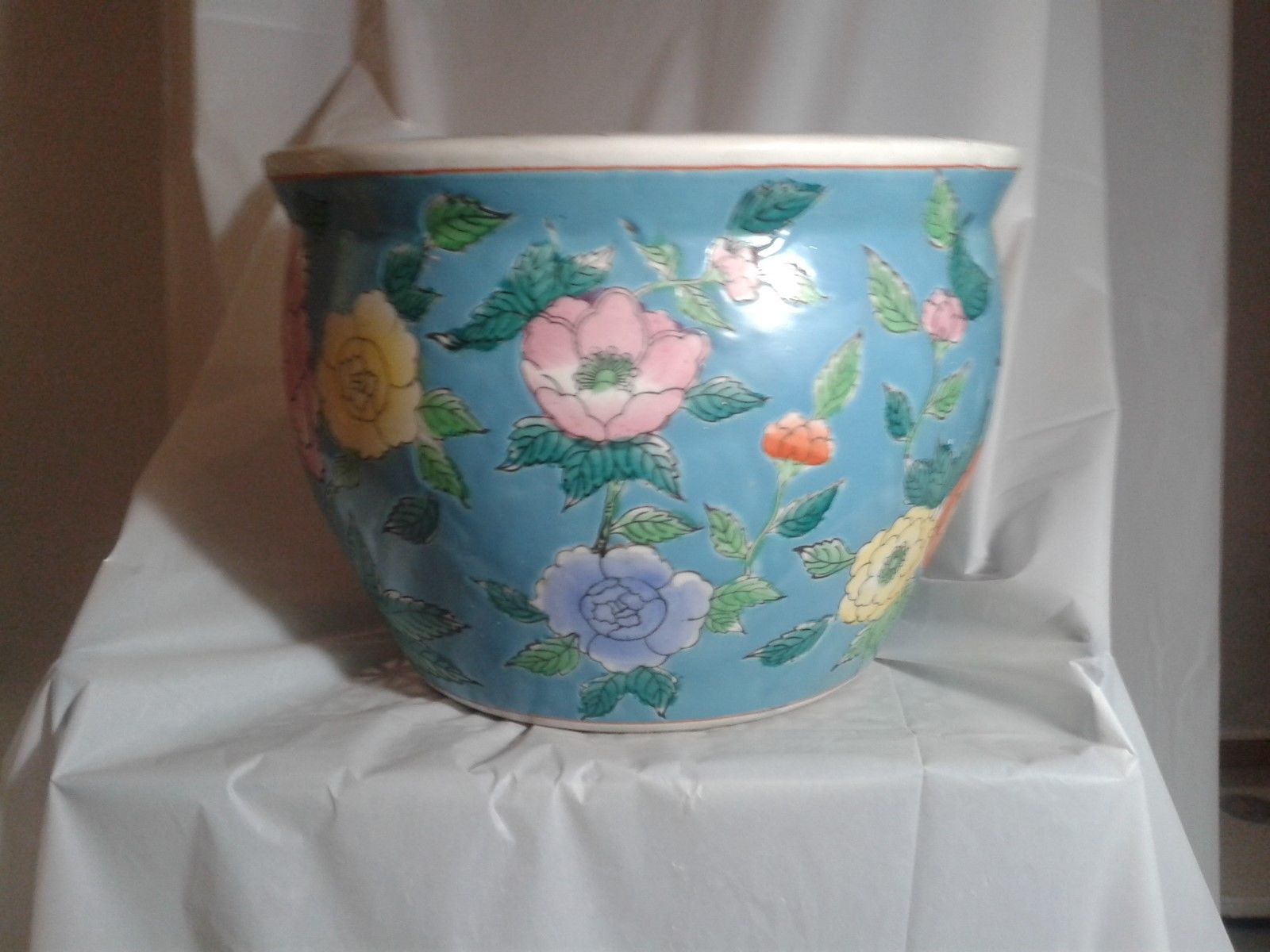 Color Chinese CACHEPOT CIAN : WITH orange yellow pink flowers