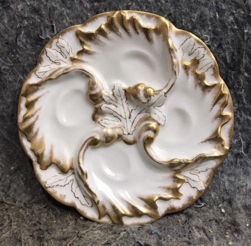 Title (ebay affiliate link): OYSTER PLATE C.F. HAVILAND LIMOGE CFH/GDM GREEN MARK WHITE & GOLD Late 1800s