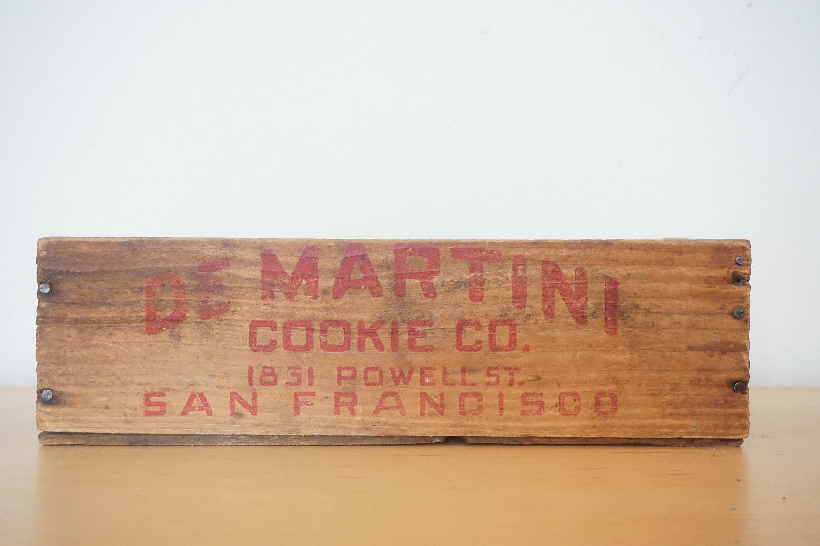 Vintage Wooden Wood De MARTINI COOKIE Box SAN FRANCISCO Crate Advertising NICE
