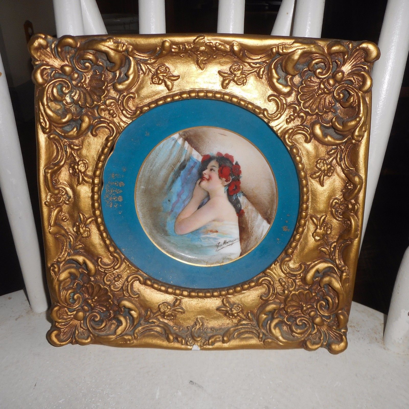 Title (ebay affiliate link): Vintage CA Limoges Portrait Plate in Gold Gilt Wood Frame France-Signed Mongaro