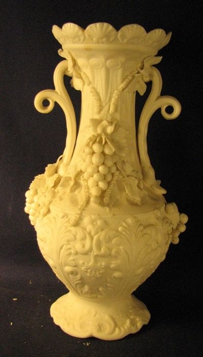Parian china vase highly decorated lots of grapes plus as is
