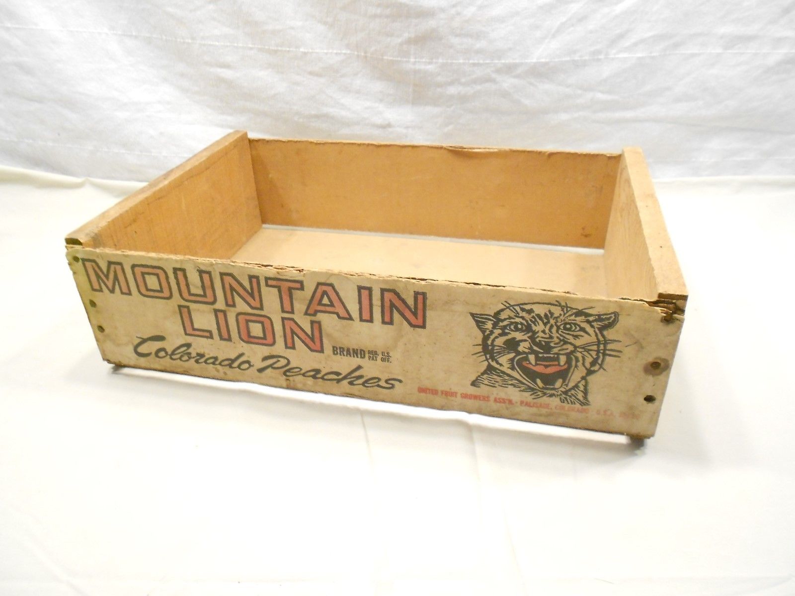 VINTAGE WOODEN CRATE, MOUNTAIN LION COLORADO PEACH CRATE