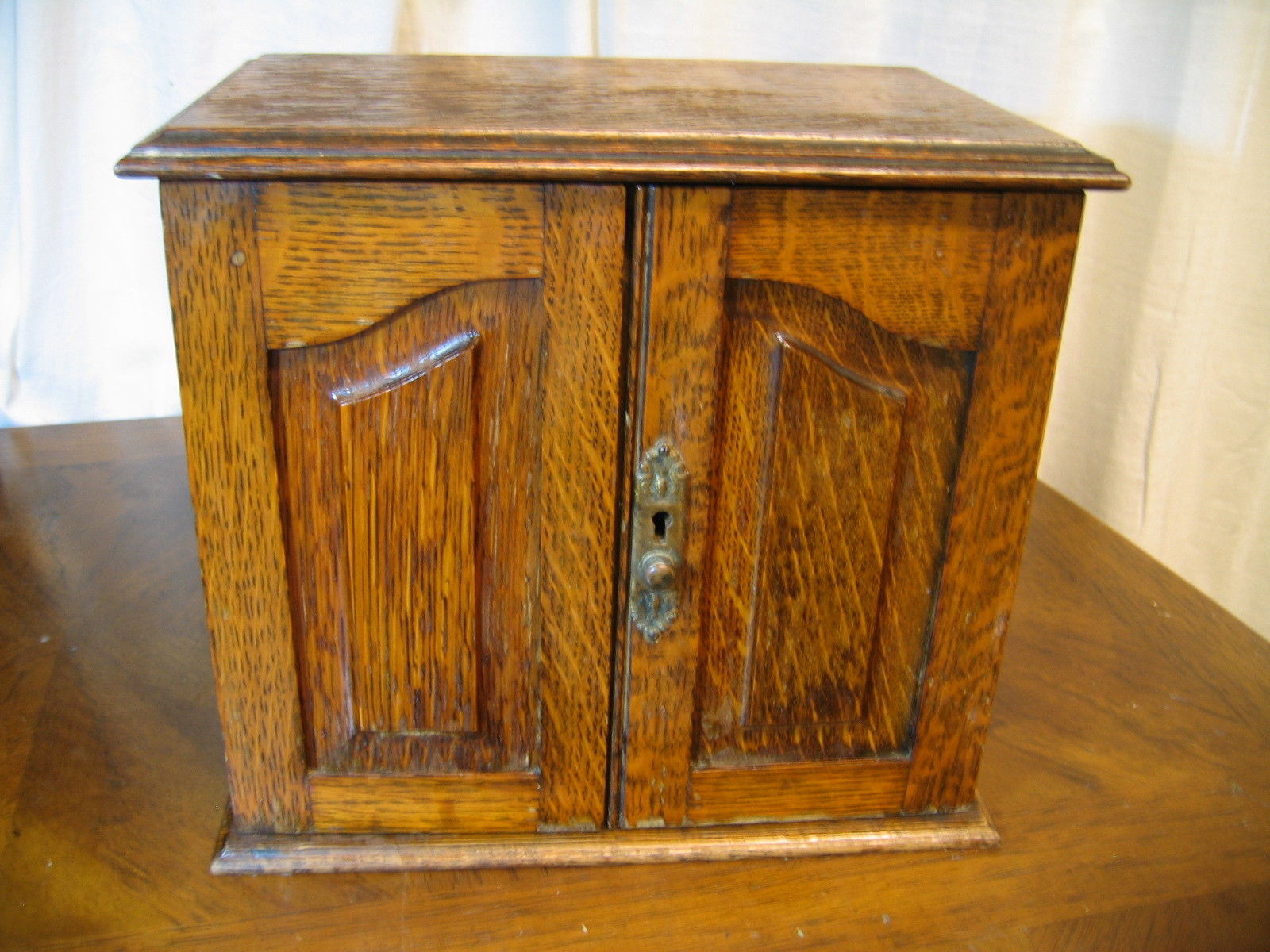 Title (ebay affiliate link): Antique Oak Bar Liquor Cocktail Game Pipe Tobacco Humidor Cabinet Box
