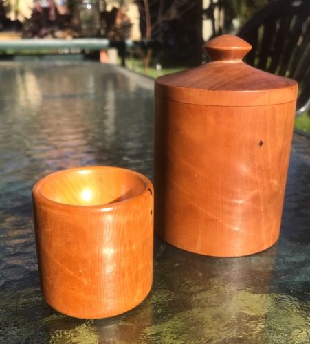Lovely Huon Pine Lidded Cylindrical Box And Egg Cup Tasmania