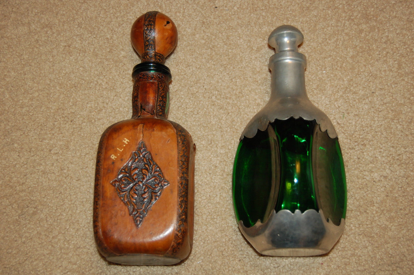Title (ebay affiliate link): Royal Holland Pewter Green Glass Daalderop and Leather Wrapped Green Decanter