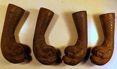 Antique Set 4 Cast Iron Dolphin Fish Victorian Era Table Furniture Feet c1880s