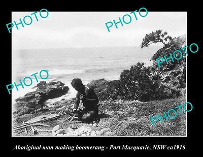 OLD LARGE HISTORIC PHOTO OF ABORIGINAL MAN MAKING BOOMERANG, NSW c1910