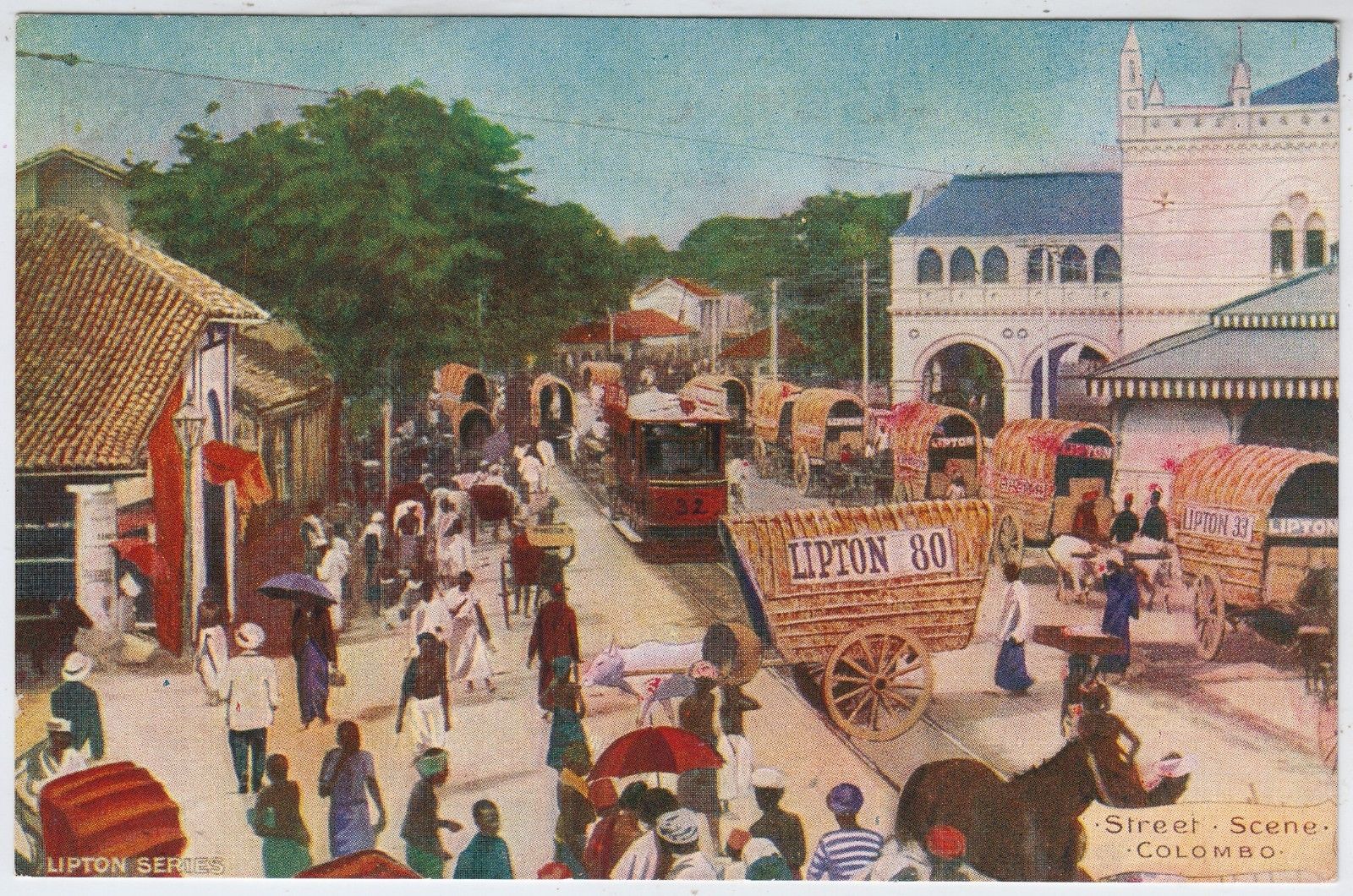 Title (ebay affiliate link): COLOMBO STREET SCENE - Ceylon - Sri Lanka - Lipton Tea Ad - c1900s era postcard