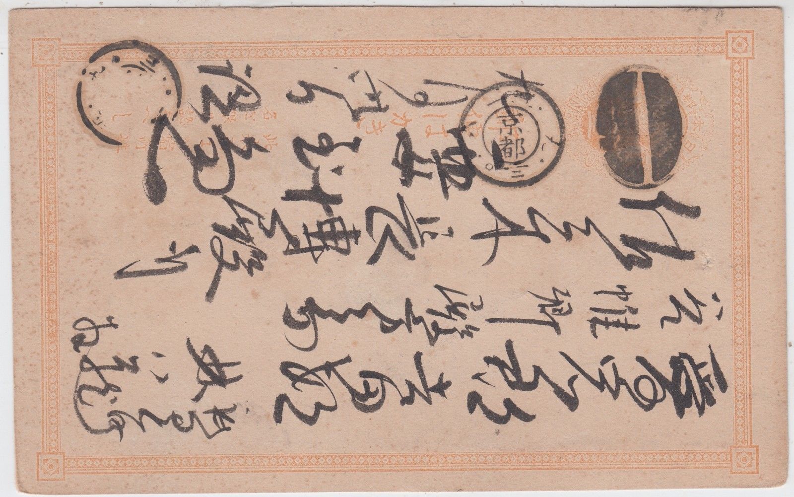 JAPAN - an early postally used postcard - preprinted postage (orange brown)
