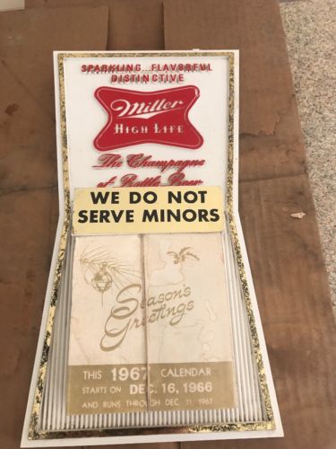 Title (ebay affiliate link): 1967 Miller High Life New Old Stock We Do Not Serve Minors Sign Calendar NR!