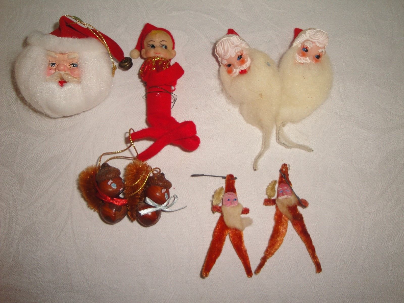 Title (ebay affiliate link): Lot of 8 Vintage Spun Cotton Beard Santas Elf Chenille Santa Squirrel Ornament