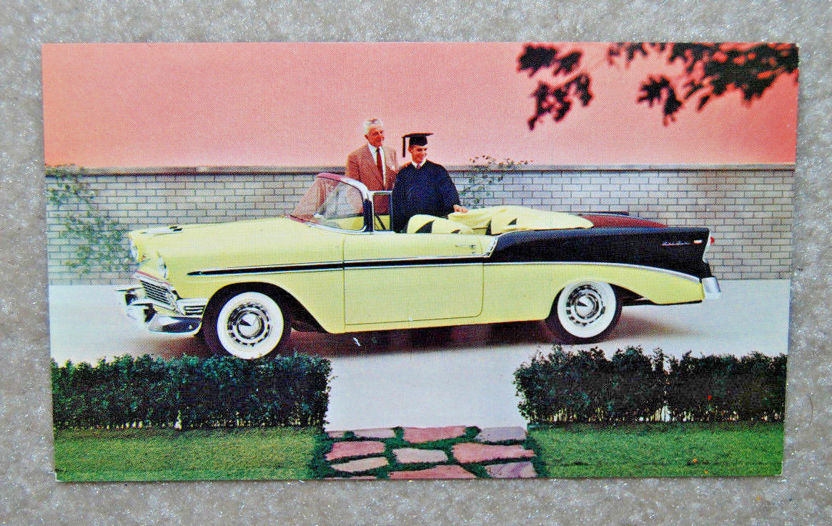 Title (ebay affiliate link): 1956 McKEAN Chevrolet Automobile Dealer Marketing BEL AIR postcard Graduation