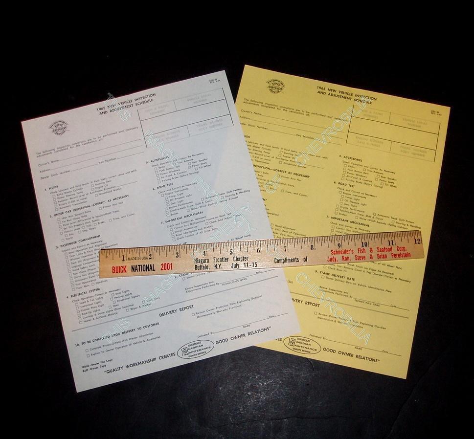 1965 Chevrolet NOS INSPECTIION SHEET Nova CORVETTE Impala CHEVELLE Corvair TRUCK