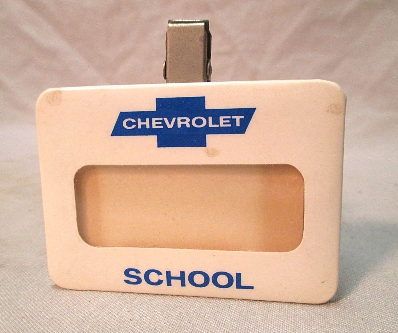 VINTAGE CHEVROLET SCHOOL TEACHERS NAME BADGE CHEVY SIGN CAMARO NOVA CHEVELLE