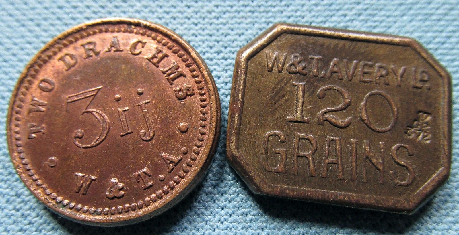Title (ebay affiliate link): Lot of 2 Old Weights Apothecary + W&T Avery 120 Grains Counterstamp Two Drachms