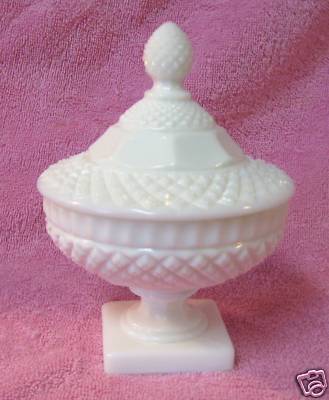 Milk Glass Covered Lid Diamond Candy Footed Dish Bowl