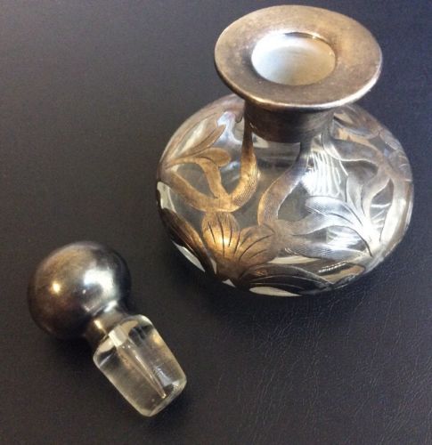 Title (ebay affiliate link): Antique Art Deco Hand Blown Glass Perfume Bottle Sterling Silver Overlay F078