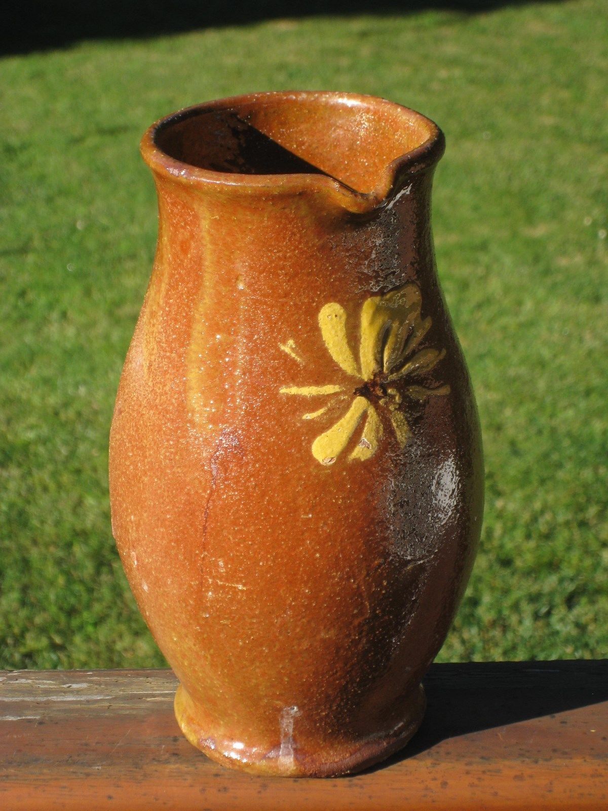 ca.1870''s Small French 8" Redware Pitcher w/Flower Decoration