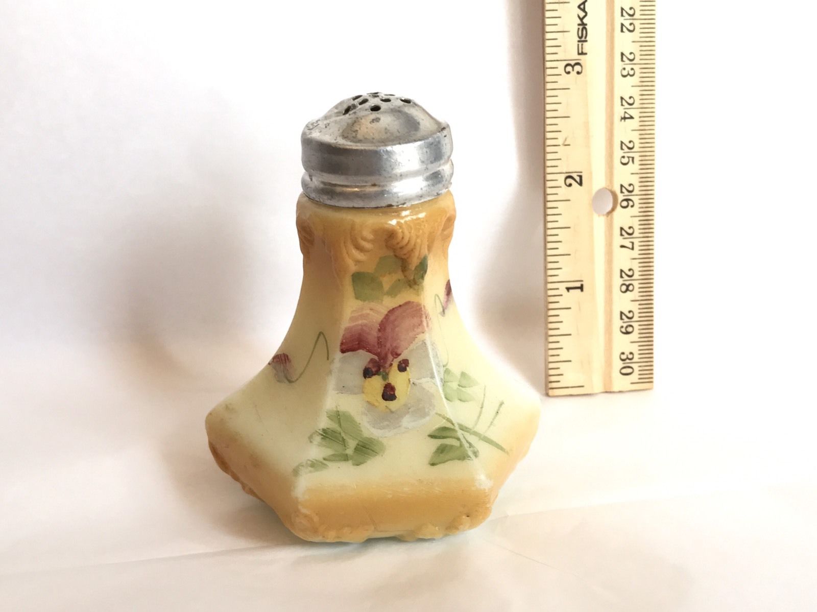 Title (ebay affiliate link): Fostoria - Hexagon Leaf - Opaque Opalware - Floral Sprigs - Scarce - 1900