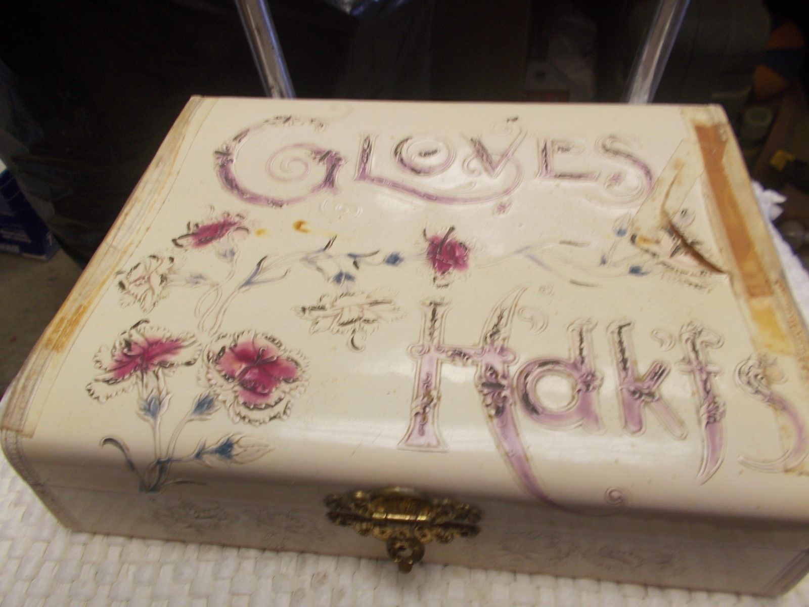 ANTIQUE VINTAGE PYROGRAPHY GLOVE OR TIE BOX