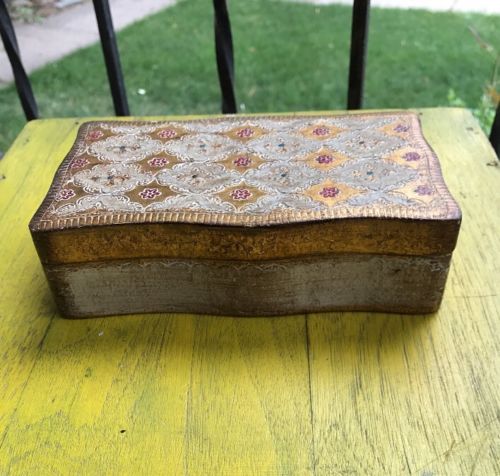 Title (ebay affiliate link): VTG Italian Tole Ware Gold Gilt Florentine Wood Trinket Jewelry Box