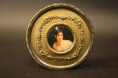 Antique French Miniature Portrait Painting Trinket Hand Painted Jewelry Box NR