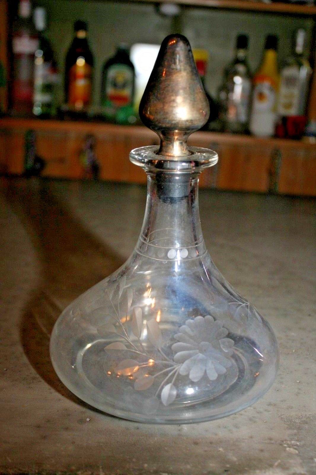 Title (ebay affiliate link): Antique Etched Glass Sterling Silver Overlay Stopper Brandy Decanter Liqueur