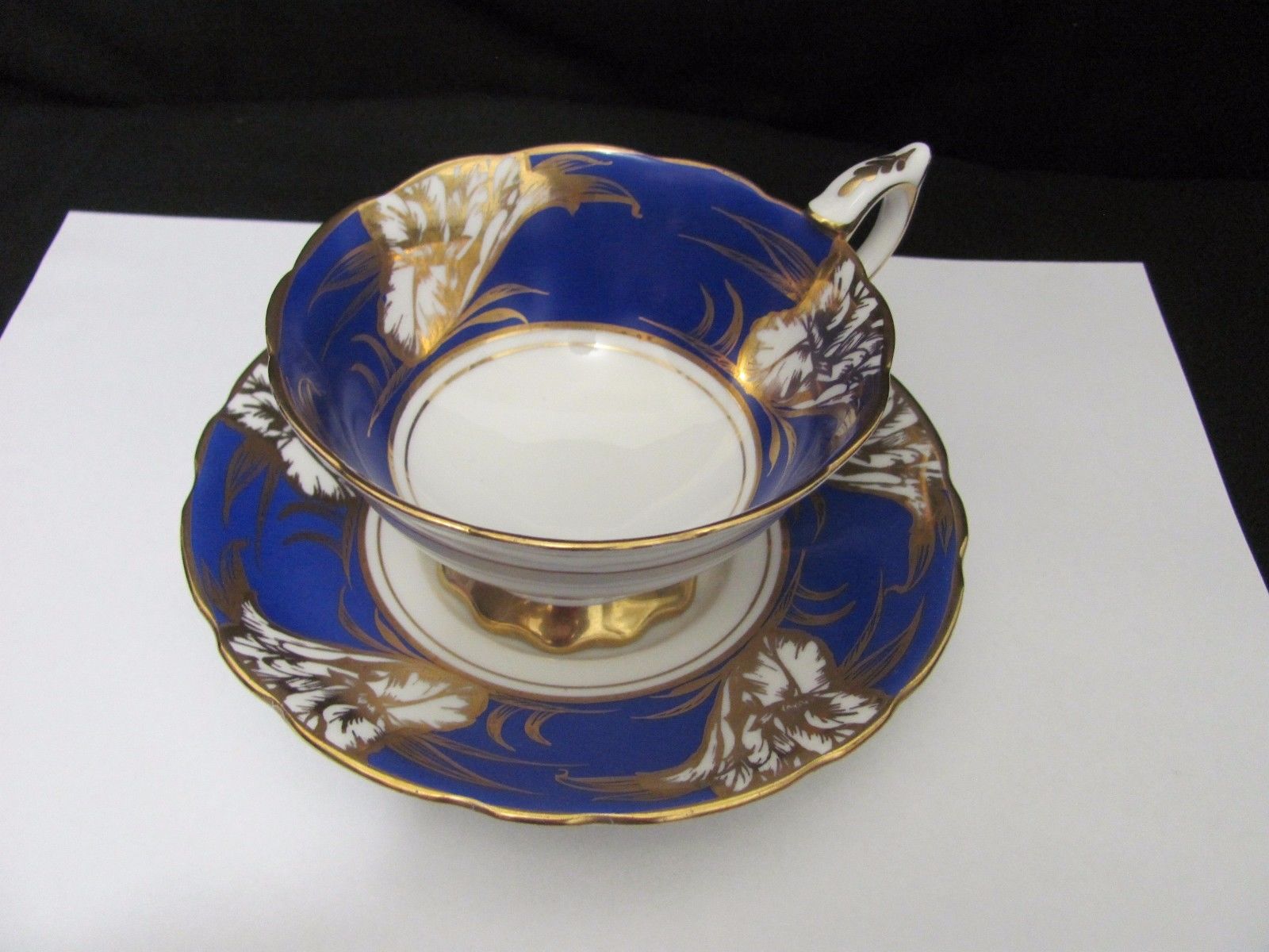 Title (ebay affiliate link): Stunning Royal Stafford Wide Mouth Blue Bold Flower Pedestal Tea Cup Saucer set