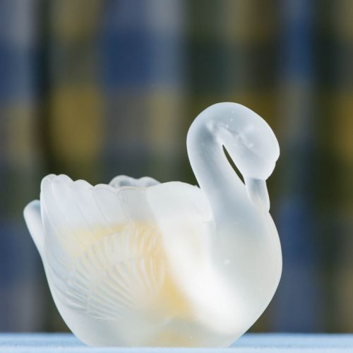 vintage FROSTED SATIN GLASS SWAN CANDLE HOLDER with candle UNUSED