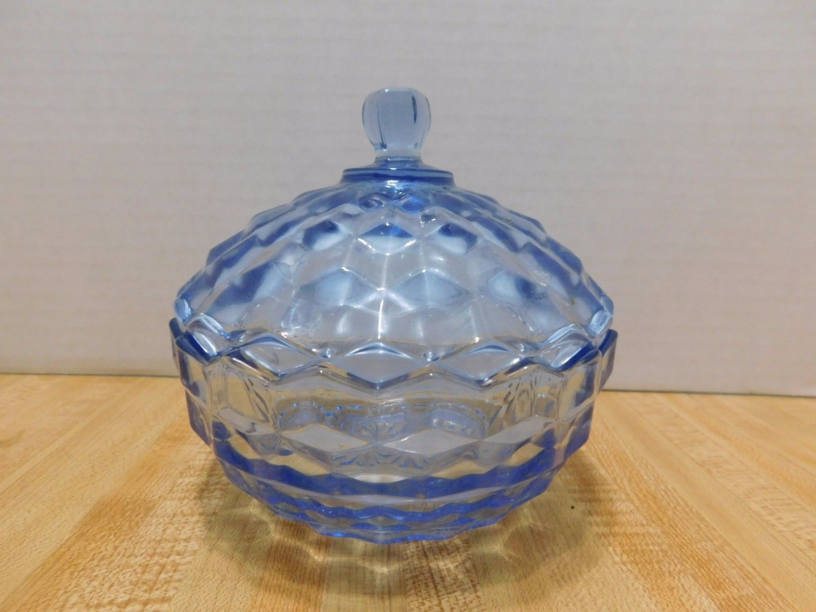 Title (ebay affiliate link): Vintage Blue Depression Jeanette Cube Cubist Candy Dish Bowl w/ Lid