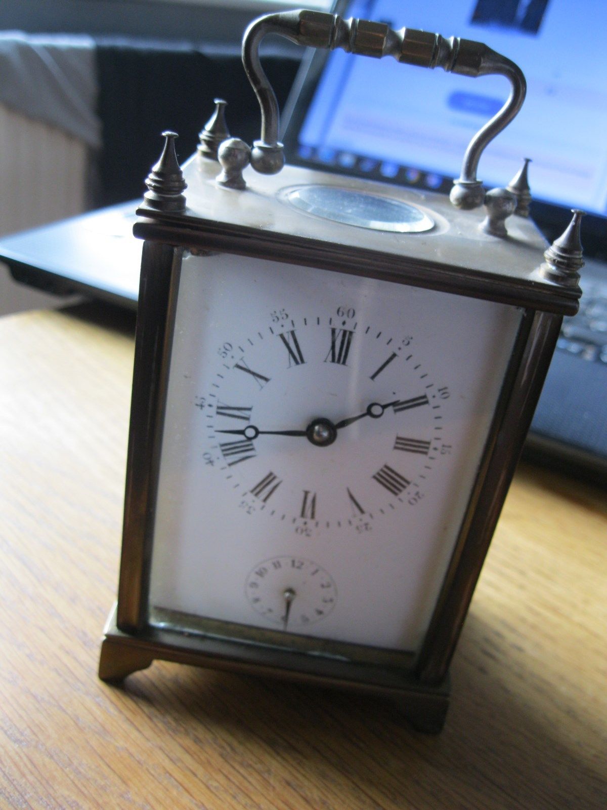 Title (ebay affiliate link): Antique Brass CARRIAGE Mantel Clock REPEATING Alarm. for repair