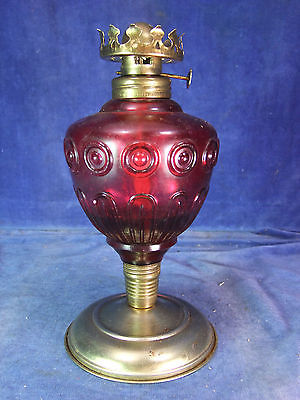 Title (ebay affiliate link): Vintage Oil Lamp With A Cranberry Glass Font - Early 20th C [4453]