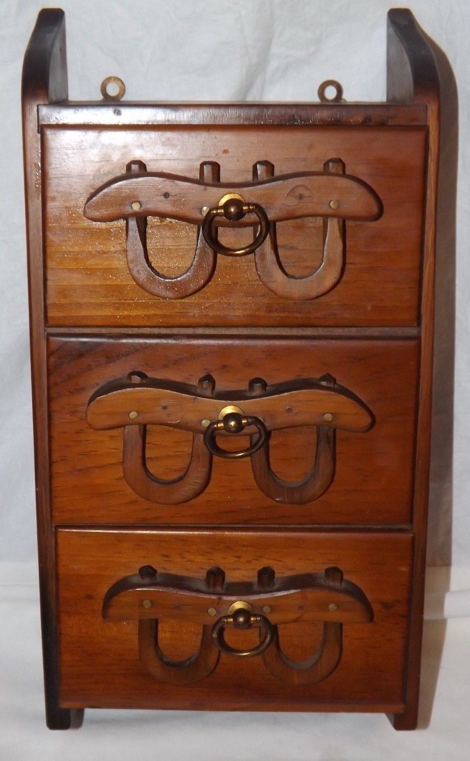 Title (ebay affiliate link): Vtg Kennedy Bros Wood 3 Drawer Hanging Wall Cabinet Bristol Vermont Double Yokes