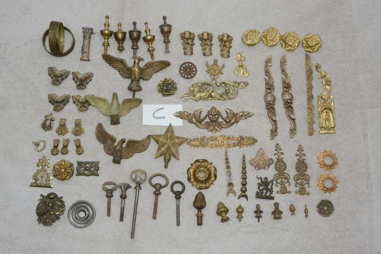 Antique furniture hardware cast brass and more Lot of 69 Pieces