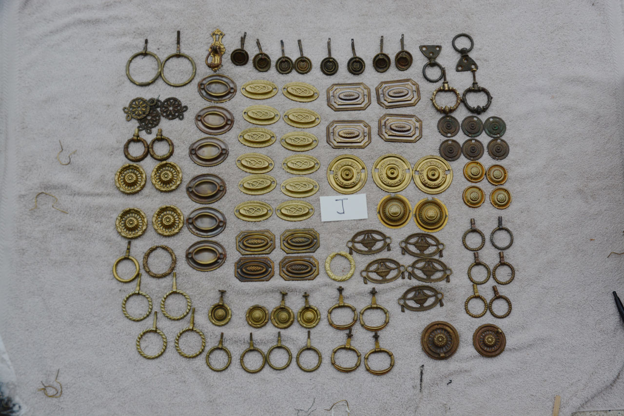 Antique furniture hardware, Brass pulls Federal parts Lot of 90 pieces