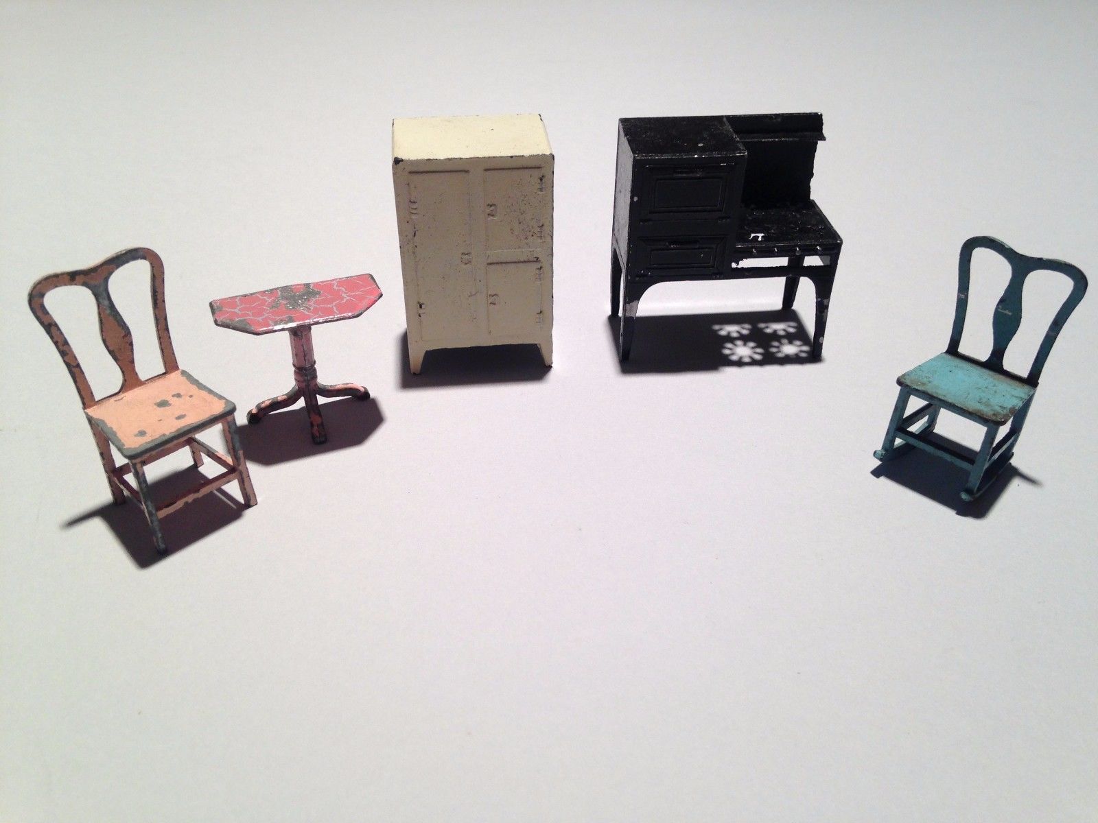 Title (ebay affiliate link): Lot of 5 Antique TootsieToy Dollhouse miniature furniture Kitchen Oven Icebox
