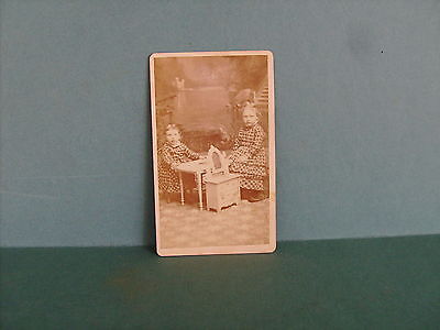 ANTIQUE CDV CHILDREN TWO SISTERS WITH TOY FURNITURE PHOTOGRAPH