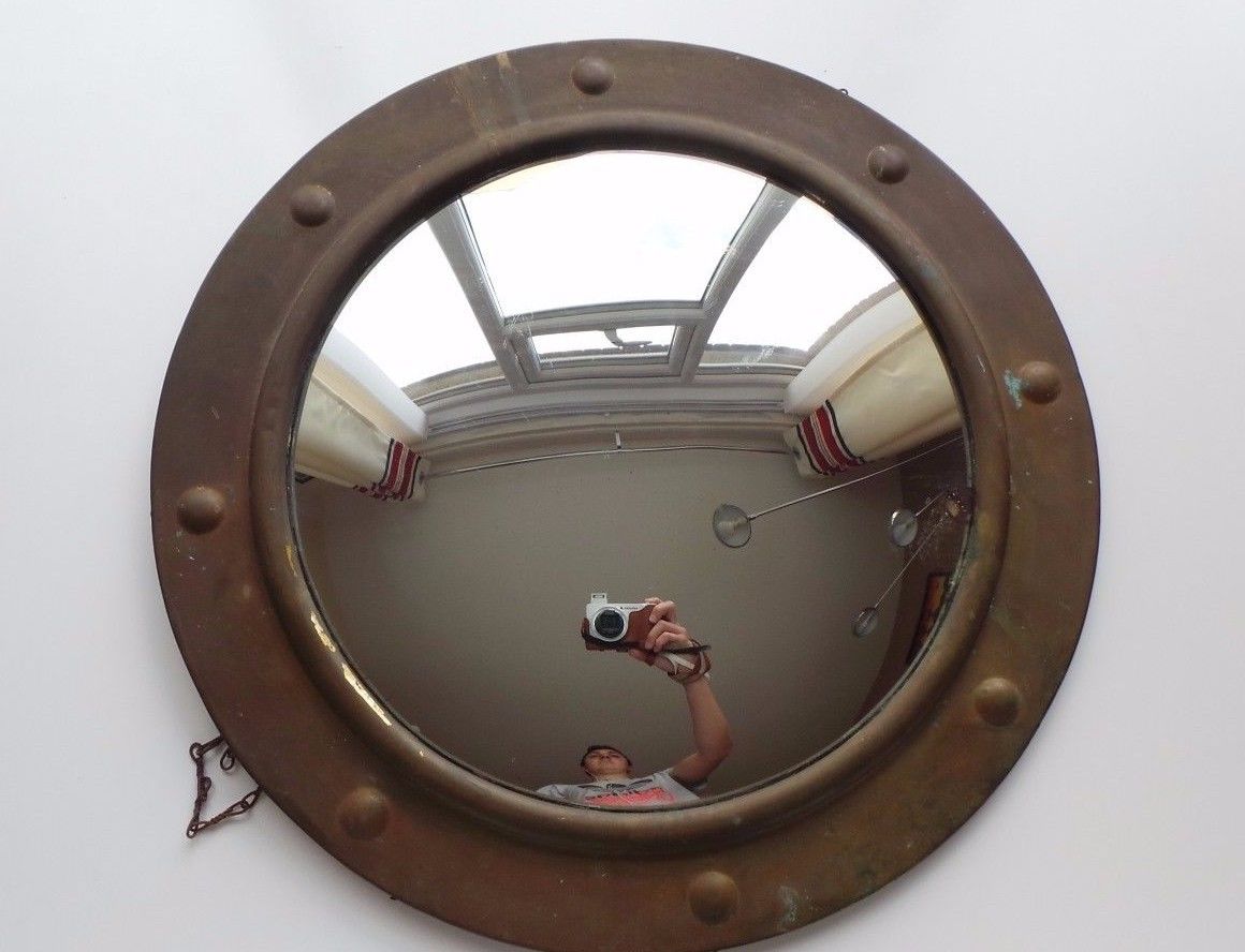 Title (ebay affiliate link): Vintage Retro Porthole Style Brass Wall Mirror Convex Glass Large Nautical 19"