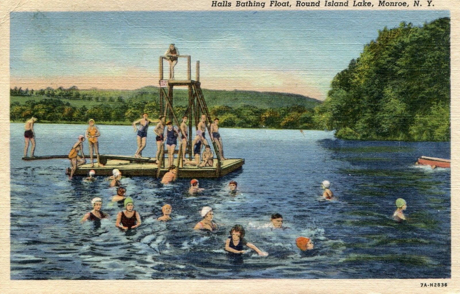 Title (ebay affiliate link): Monroe, N.Y., Halls Bathing Float, Round Island Lake
