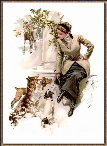 NEW! Beautiful Young lady & Dogs ART HARRISON FISHER 61 modern card reprint