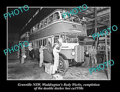 OLD LARGE HISTORIC PHOTO OF WADDINGTONS BODY WORKS, GRANVILLE NSW, BUS 1950s
