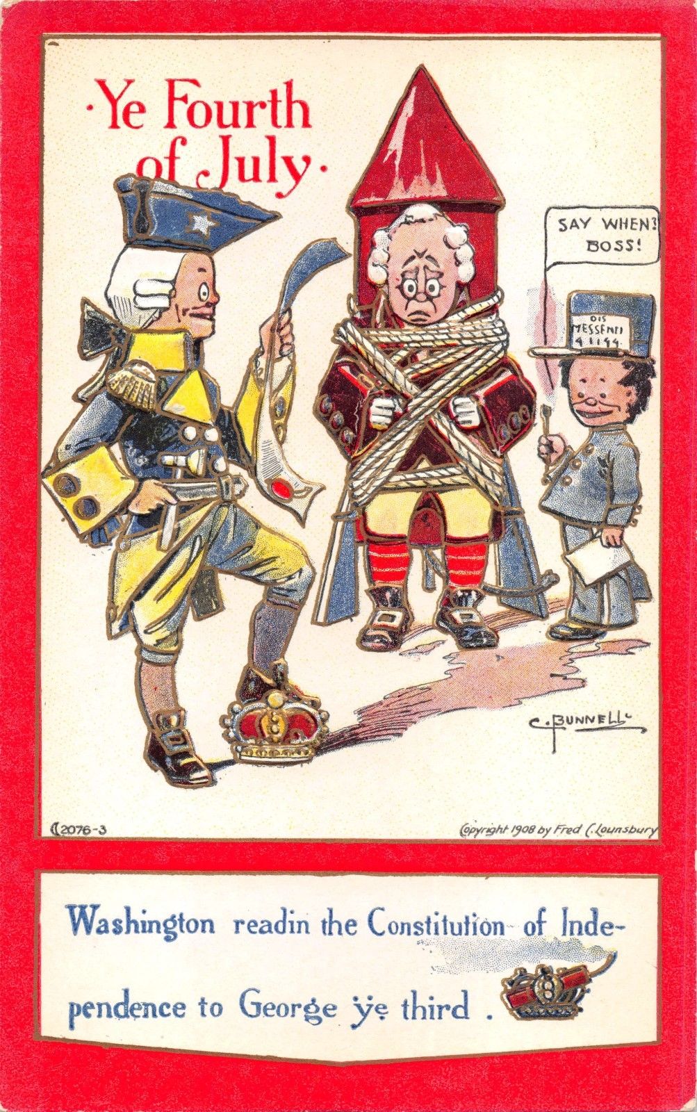 Fourth of July Post Card-Washington Reads to George III-Signed ''Bunnell''