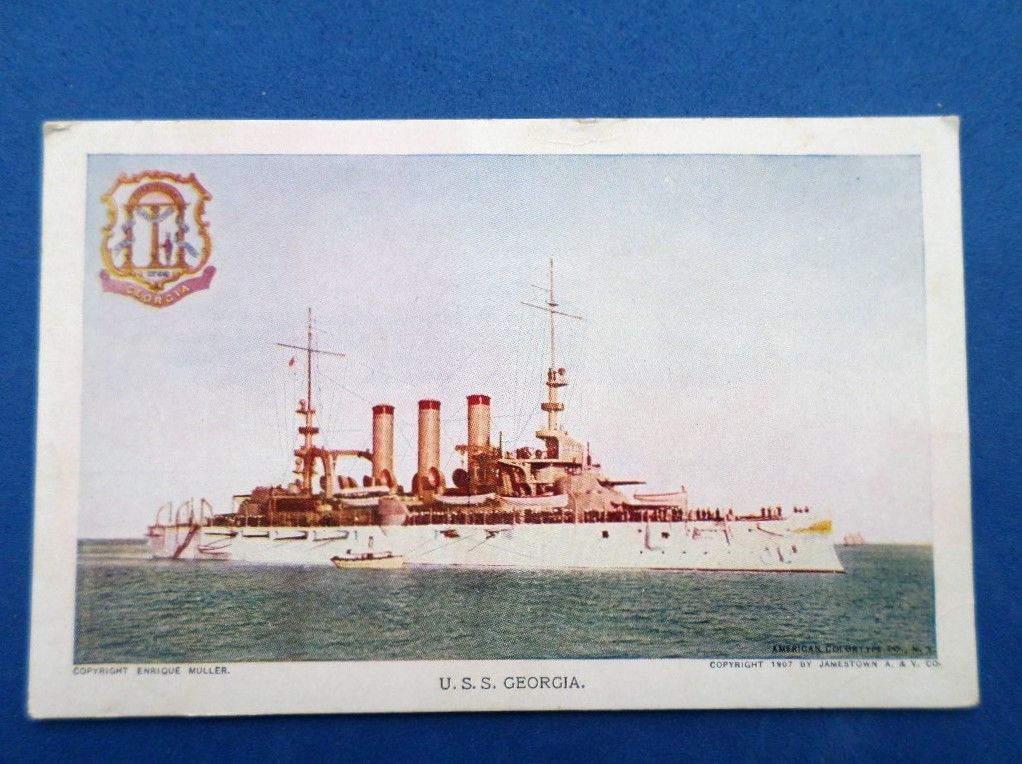 Title (ebay affiliate link): ANTIQUE POSTCARD 1907 WARSHIP U.S.S. GEORGIA ENRIQUE MULLER JAMESTOWN EXPO