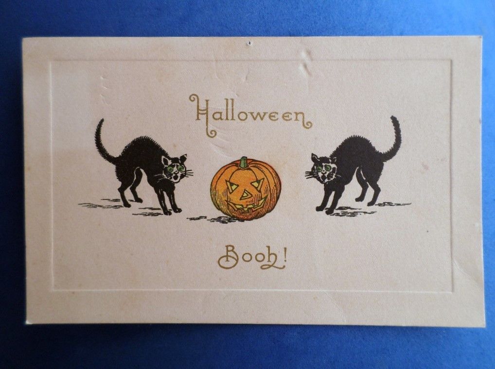 ANTIQUE OLD HALLOWEEN POSTCARD GIBSON ART CARD BLACK CATS JACK O LANTERN BOO!
