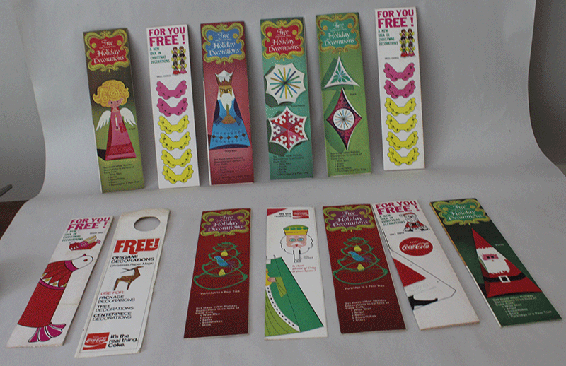 LARGE LOT Of 13 VINTAGE 1960''s COCA COLA Uncut CHRISTMAS Ornaments DECORATIONS