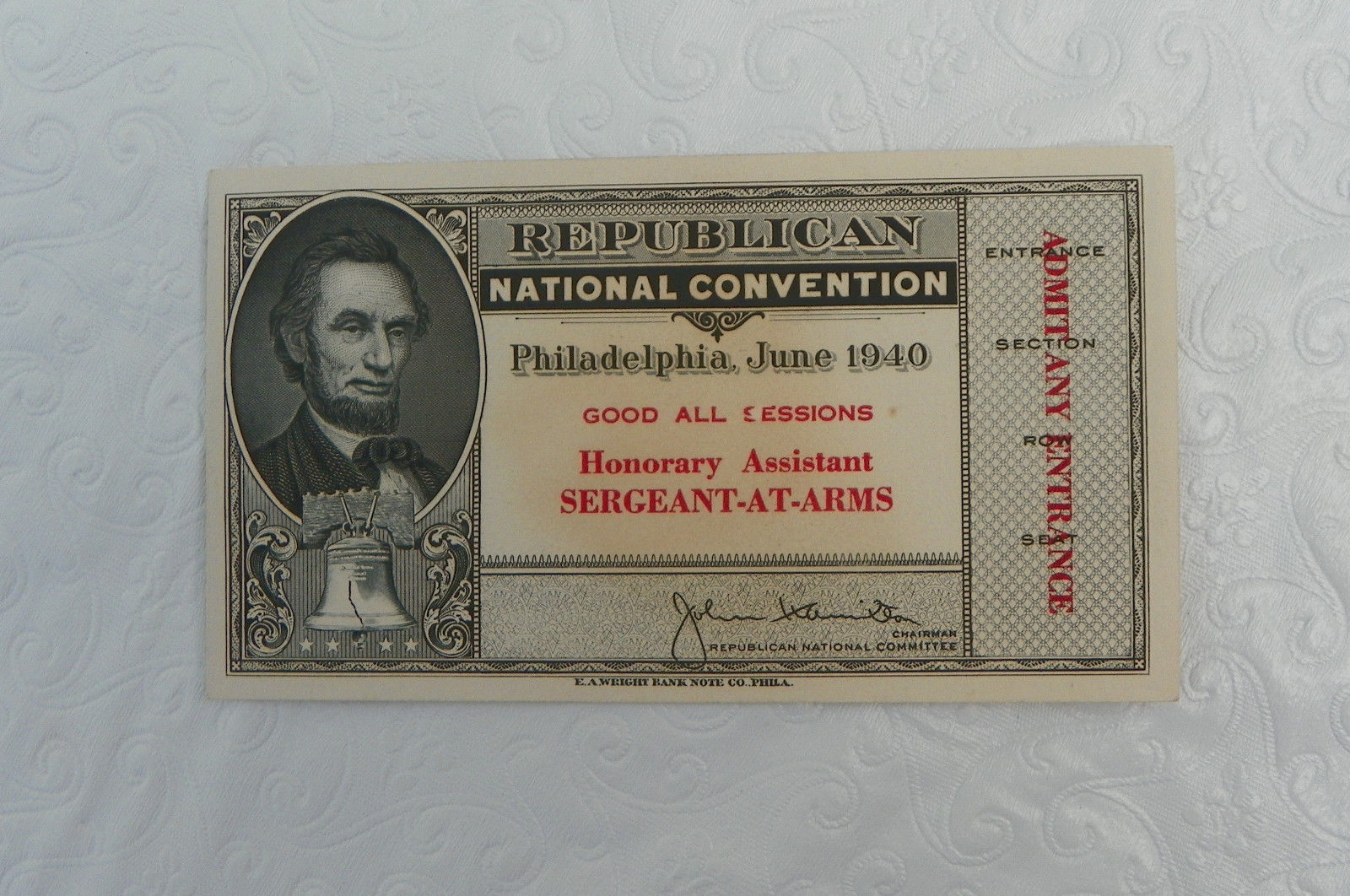 Title (ebay affiliate link): PASS OR TICKET TO THE 1940 REPUBLICAN CONVENTION