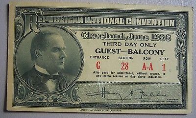 Title (ebay affiliate link): 1936 Cleveland Republican National Convention Admission Ticket Mint & Original